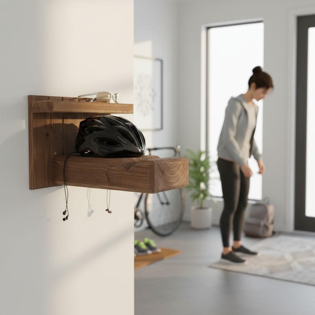 That's precisely why we developed this wooden wall-mounted bike rack. It's the perfect combination of style, strength, and functionality. There's plenty of room for a helmet and accessories. Exclusively available from us (custom sizes are possible), this wall-mounted bike rack was designed, constructed, and tested over an extended period in collaboration with our carpentry workshop. The rack is made of sturdy spruce wood with an attractive support beam. This wall system for your bike (whether city bike, road bike, or mountain bike) is particularly striking thanks to the milled mounting brackets and the additional chamfers on the sides of the support beam. A real eye-catcher in your home, it rivals your bike itself.