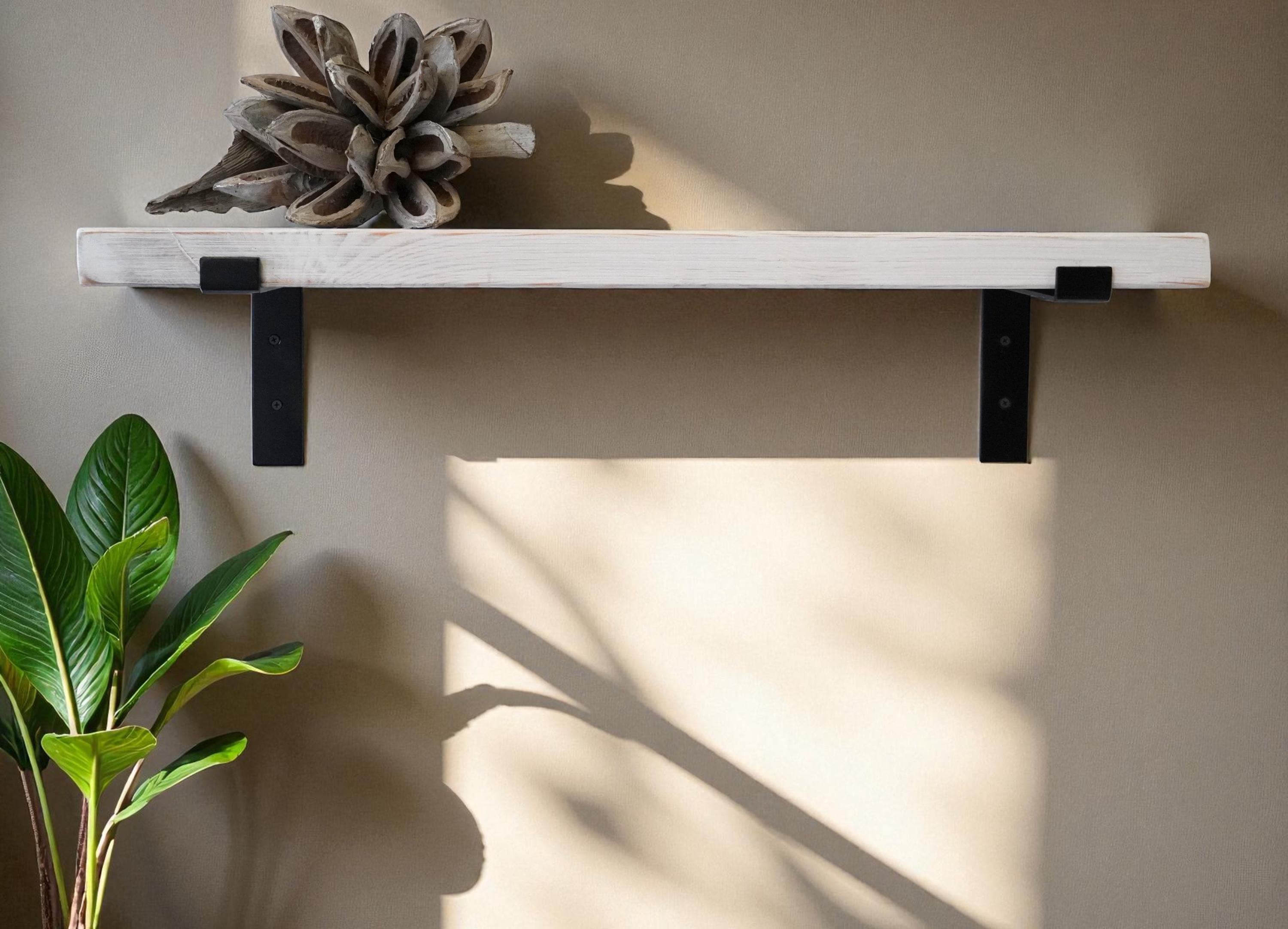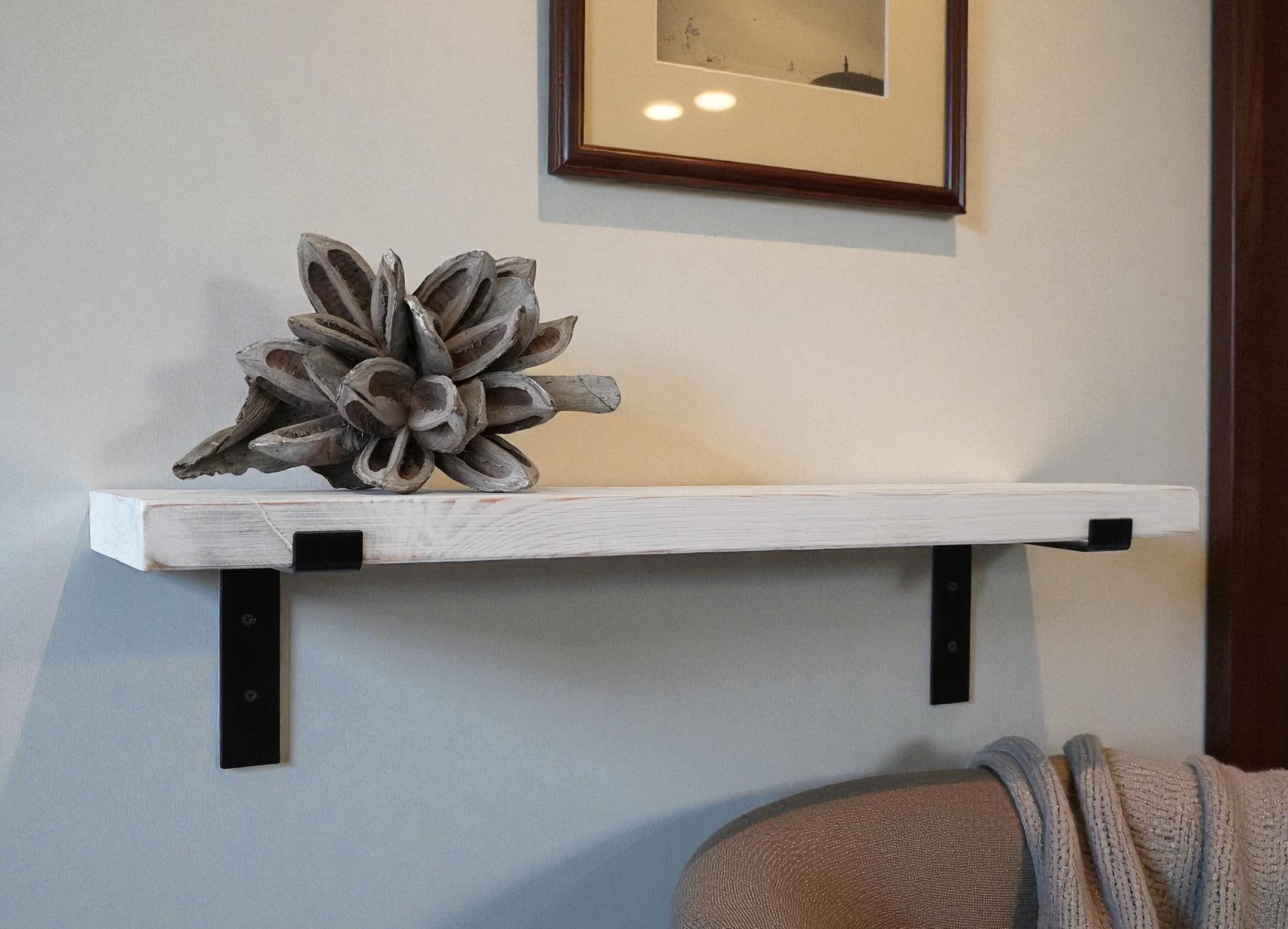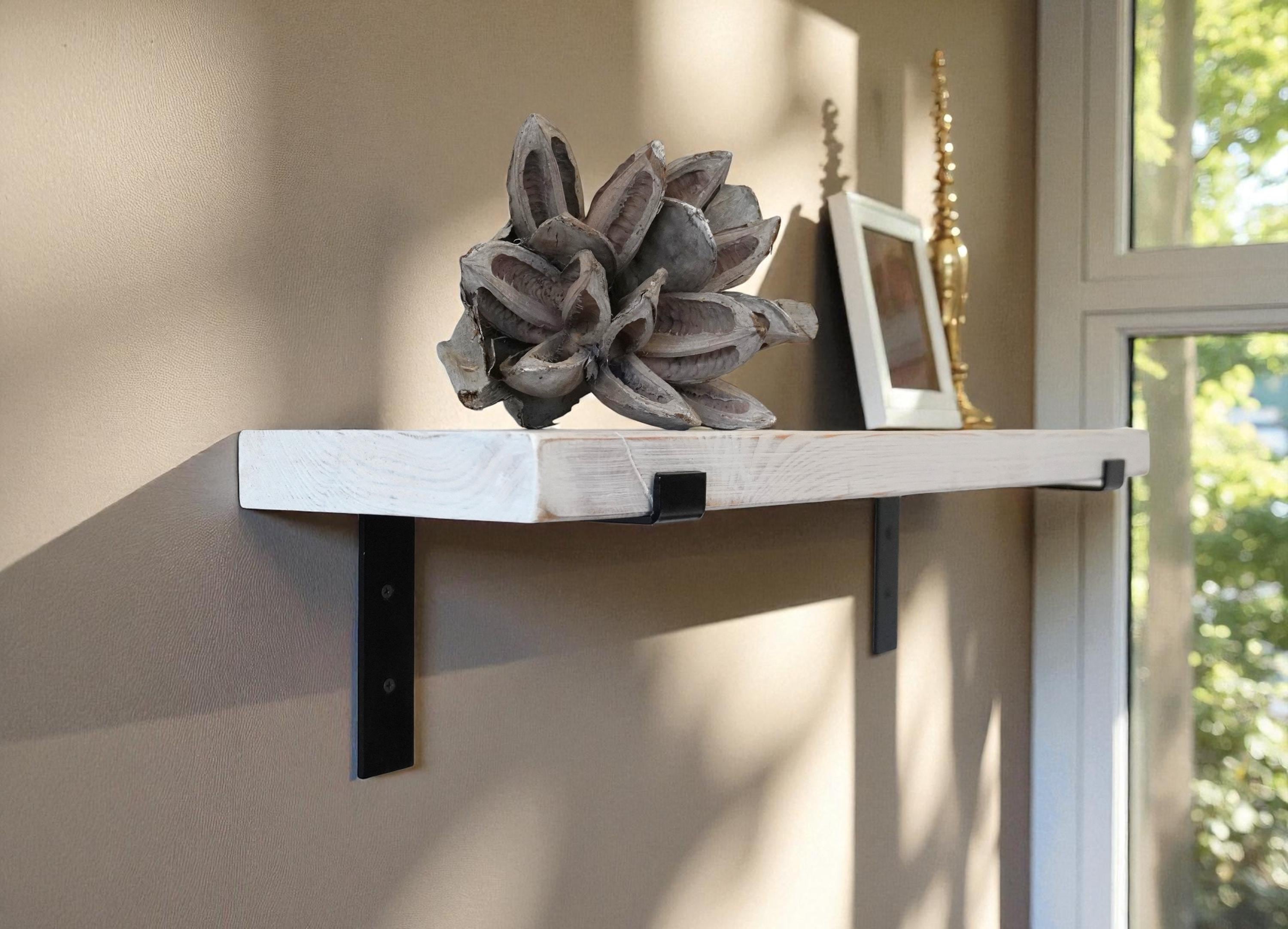 Rustic solid wood wall shelf | 4 cm thick plank | Floating shelf in shabby chic | Handmade in white | 50-100 cm width