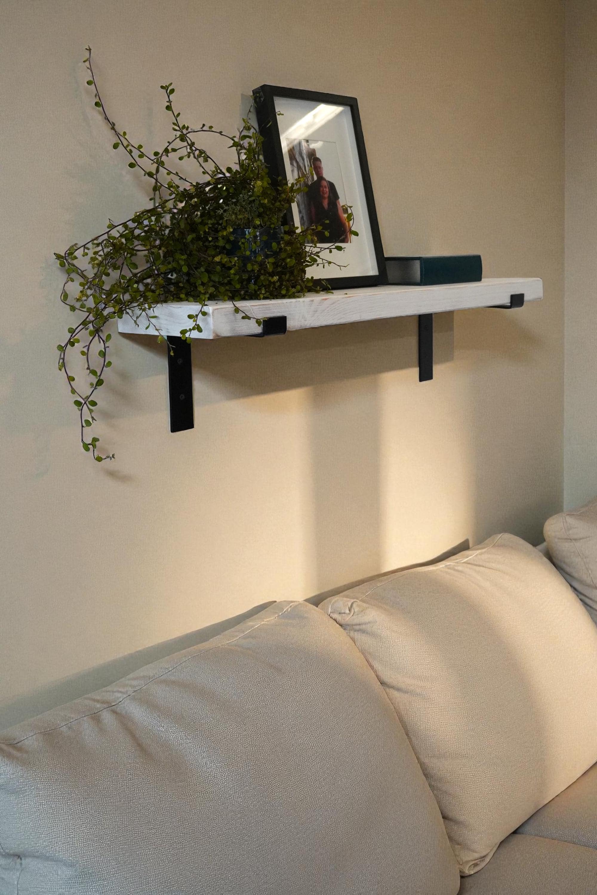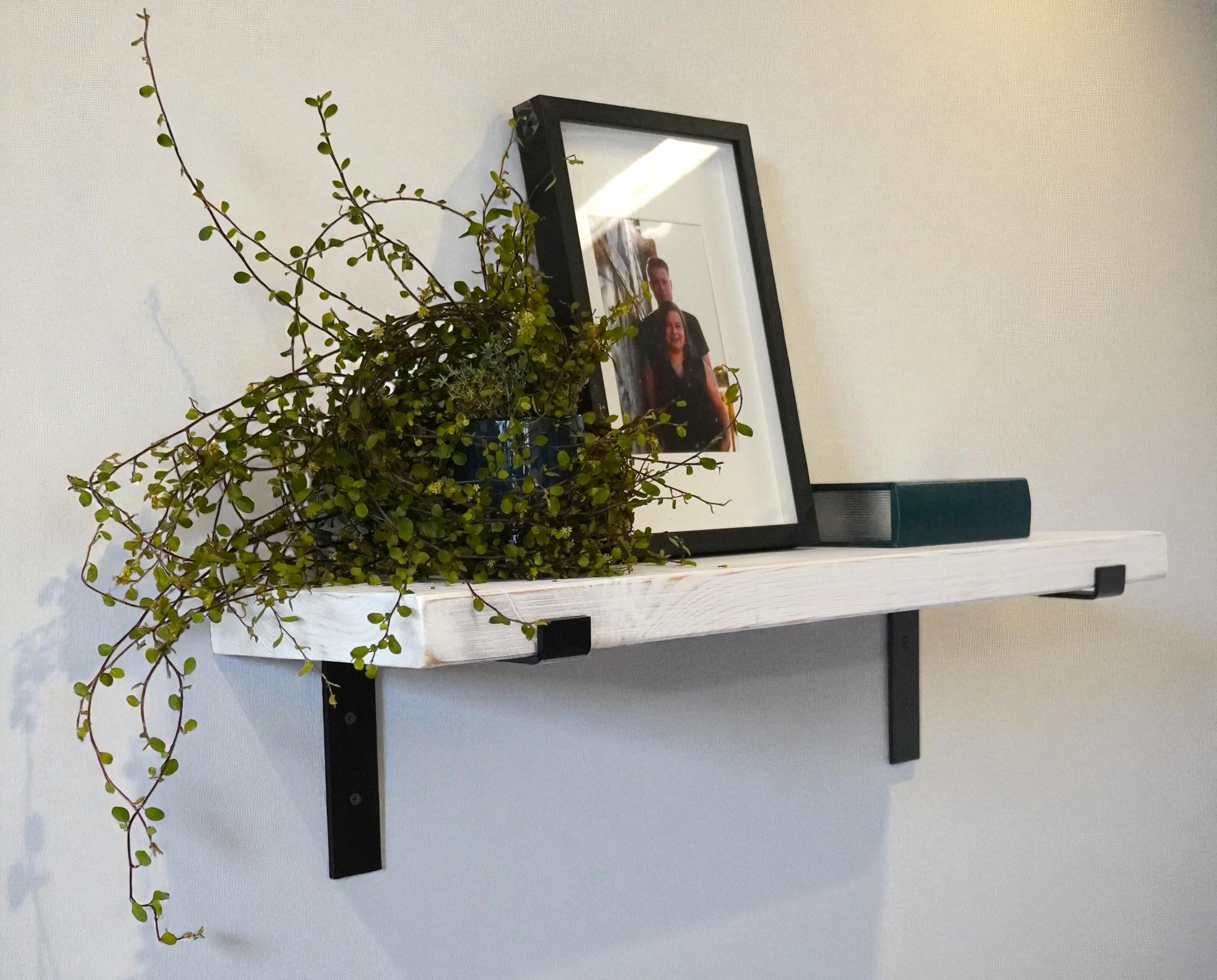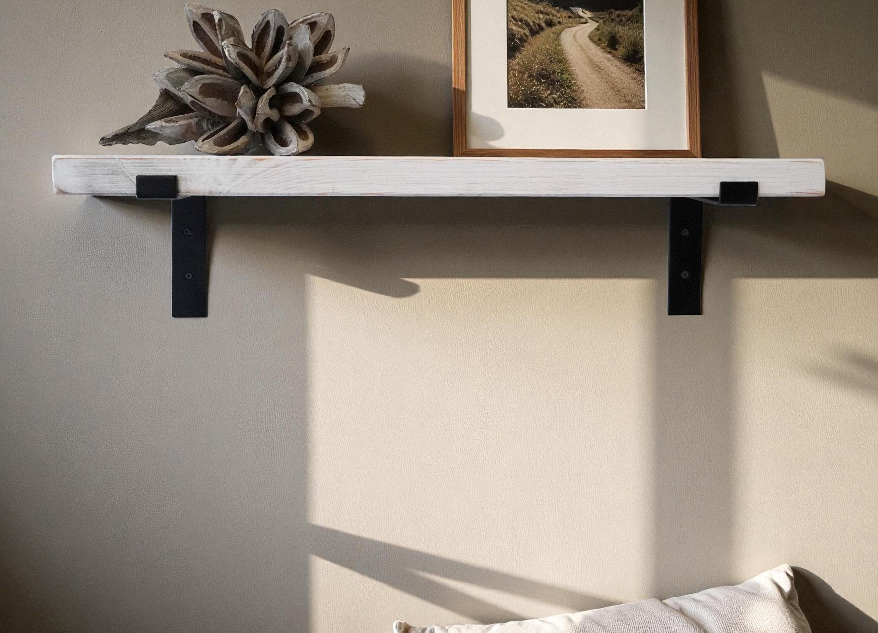 Rustic solid wood wall shelf | 4 cm thick plank | Floating shelf in shabby chic | Handmade in white | 50-100 cm width
