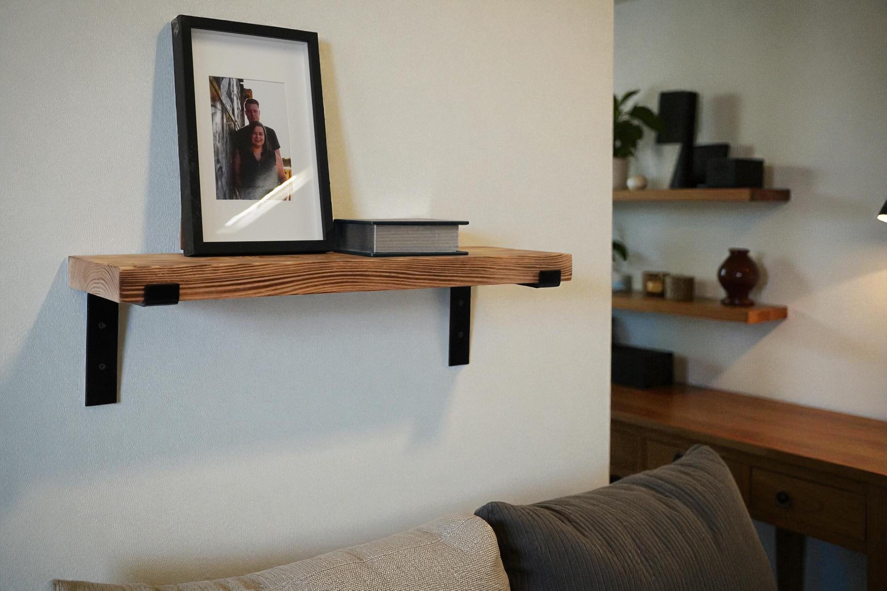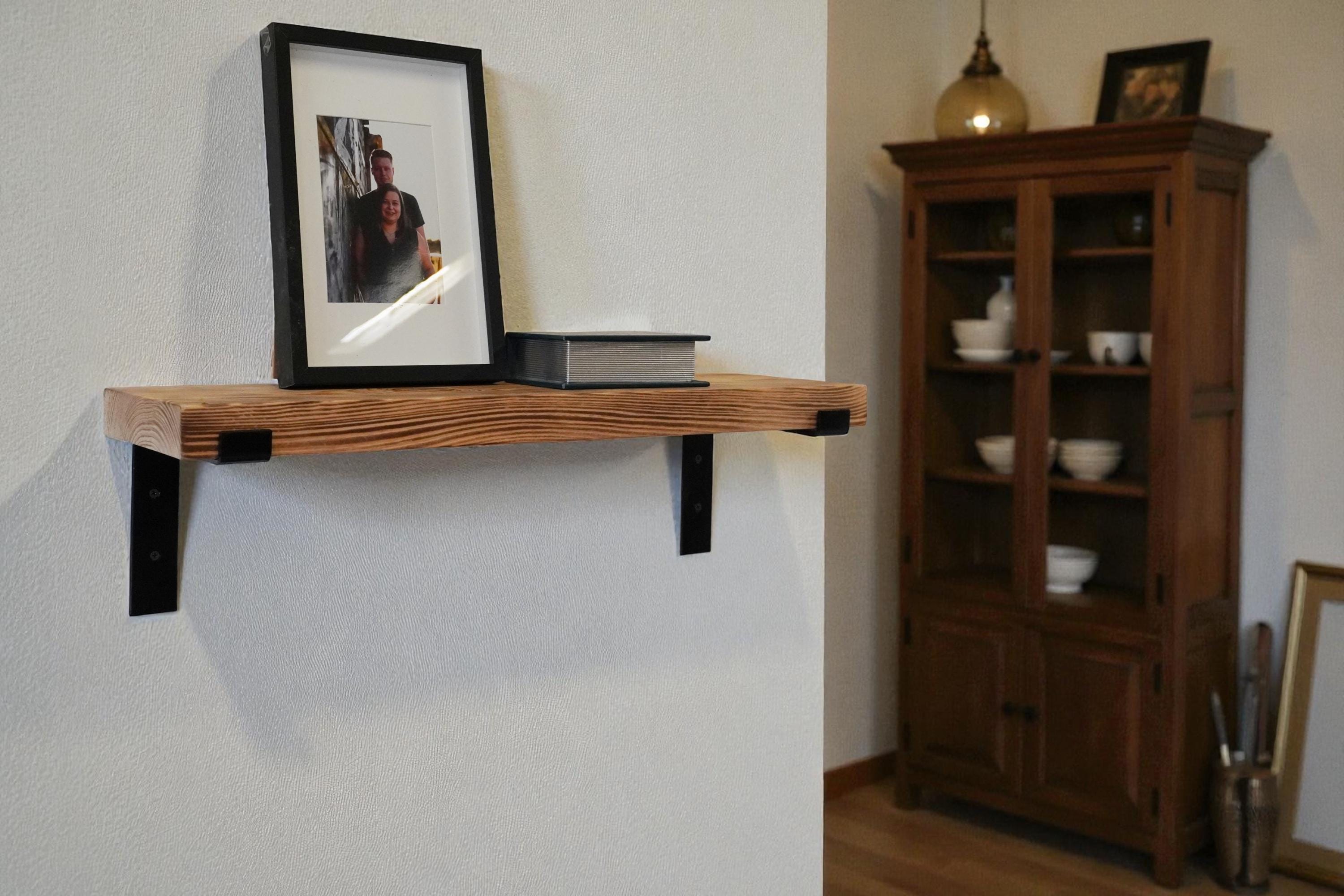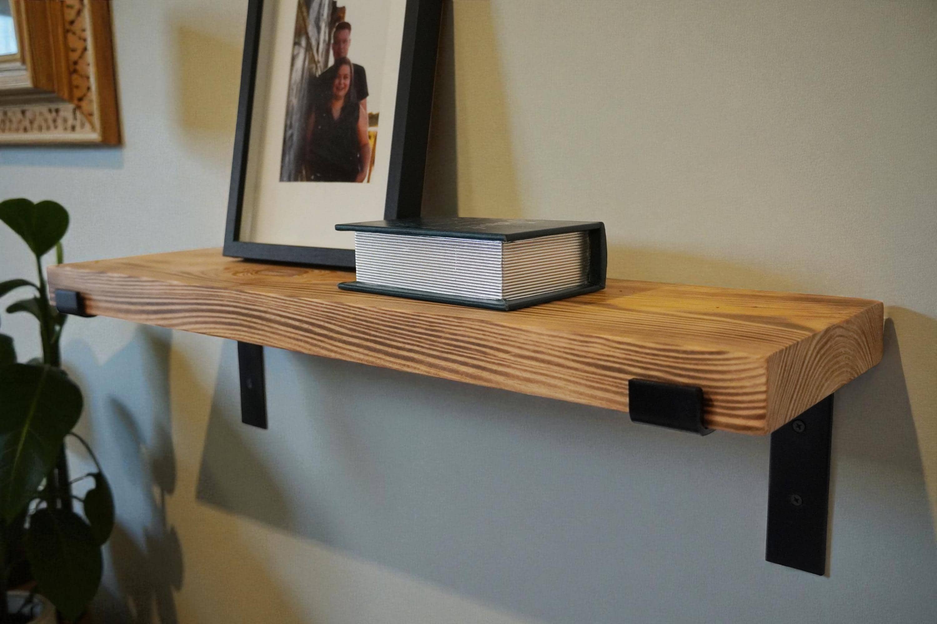 Rustic solid wood wall shelf | 4 cm thick plank | Floating shelf in shabby chic | Handmade in geflammt | 50-100 cm width
