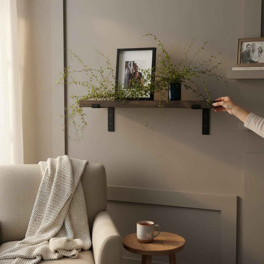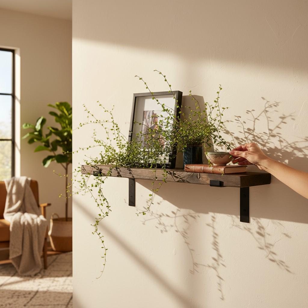 Rustic solid wood wall shelf | 4 cm thick plank | Floating shelf in shabby chic | Handmade in white | 50-100 cm brown
