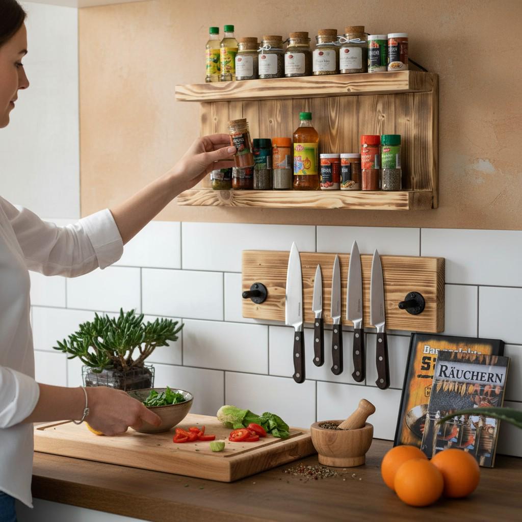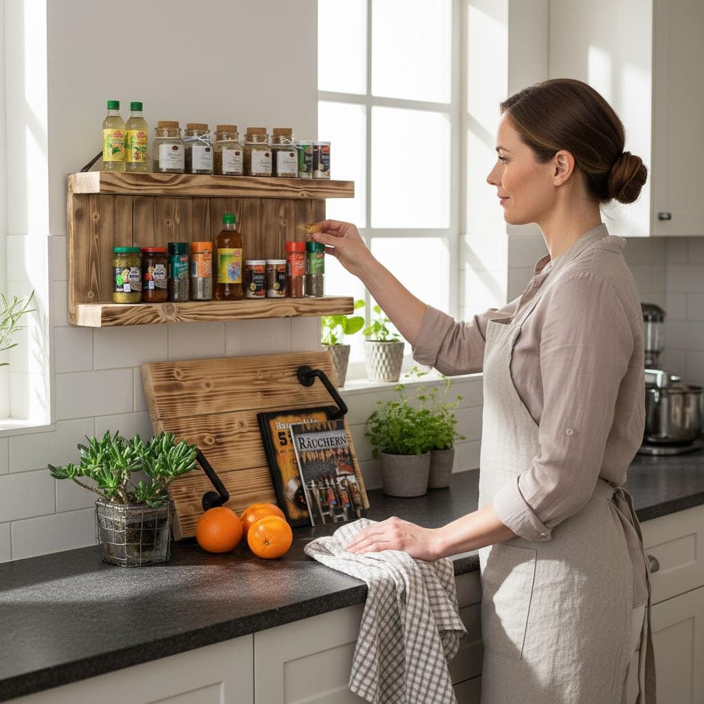 High quality and practical wooden spice rack for your kitchen! Every piece is unique, because we produce everything ourselves with great attention to detail in our small manufactory in northern Germany. Real craftsmanship paired with high-quality materials and noble looks.