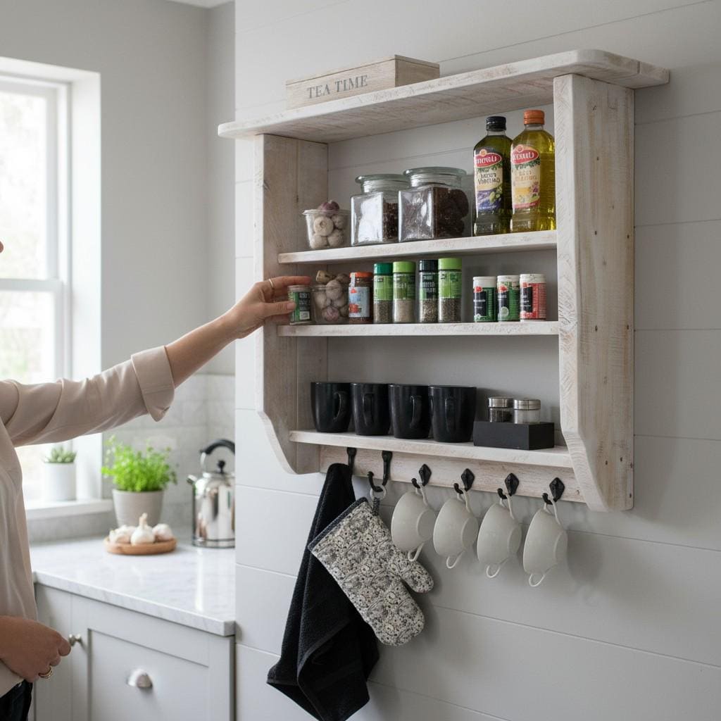 Exclusive spice rack (without decoration and spices) with 4 small and 2 large metal hooks in black for hanging towels or cups