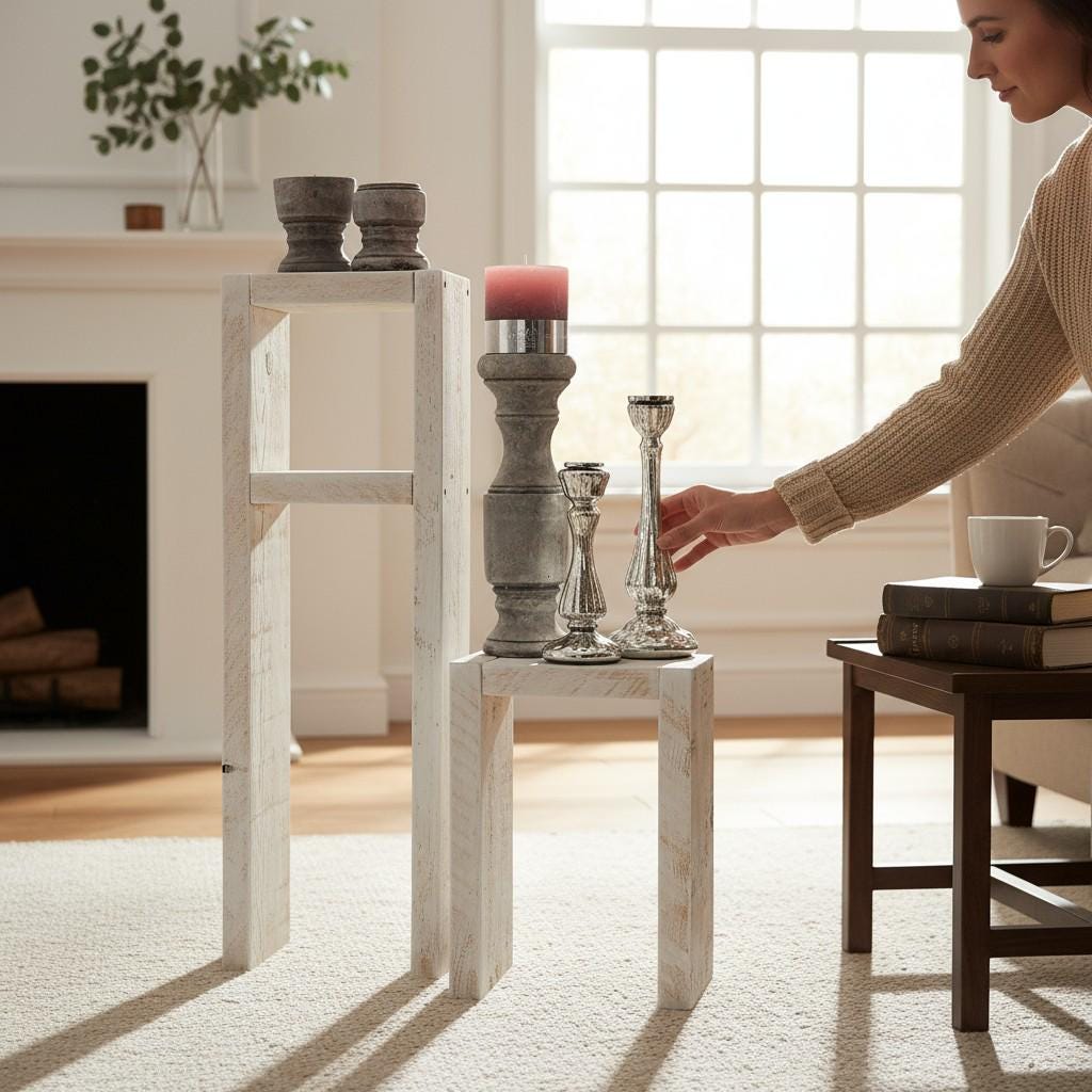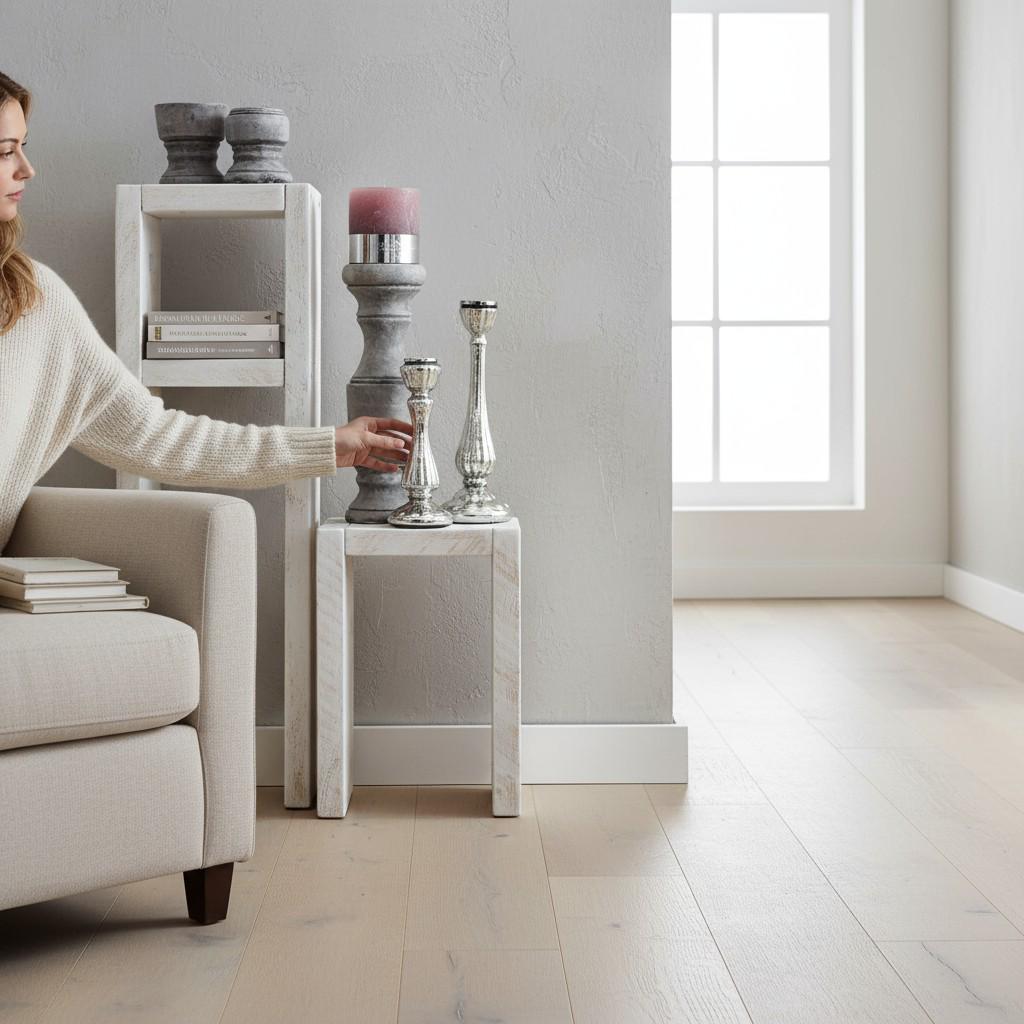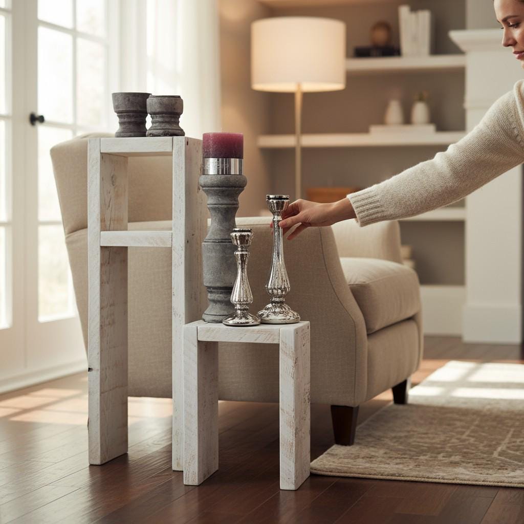 The tables are made of robust spruce wood. Then they are painted by us in a white glaze finish and get their individual character.