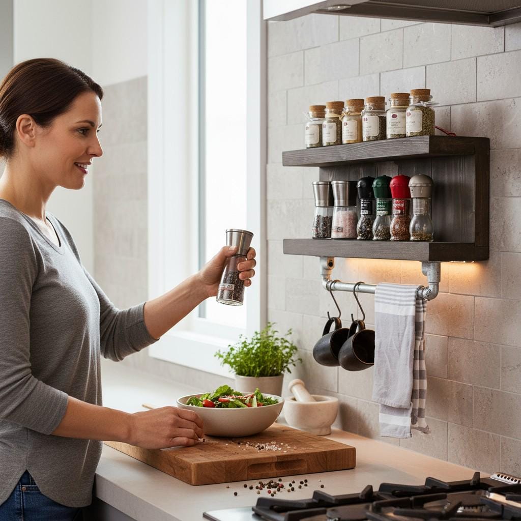 • FULLY ASSEMBLED: The spice rack comes ready assembled to your home. No tedious assemble, simply unpack, attach to the wall and fill with the finest spices.