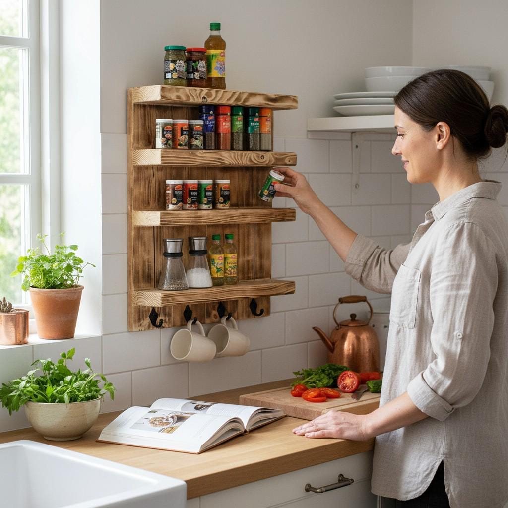 High quality and practical spice rack made of wood for your kitchen! Each piece is unique with us, because we make everything ourselves with great attention to detail in our small manufactory in northern Germany. True craftsmanship paired with high-quality materials and noble looks.