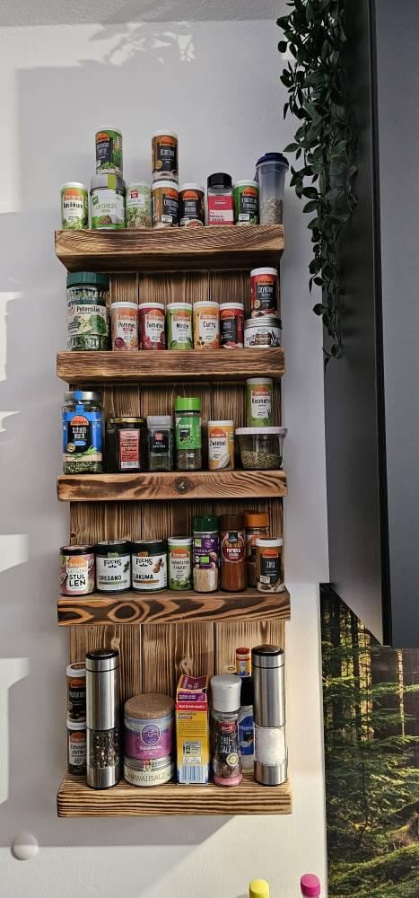 High quality and practical wooden spice rack for your kitchen! Every piece is unique, because we produce everything ourselves with great attention to detail in our small manufactory in northern Germany. Real craftsmanship paired with high-quality materials and noble Looks.